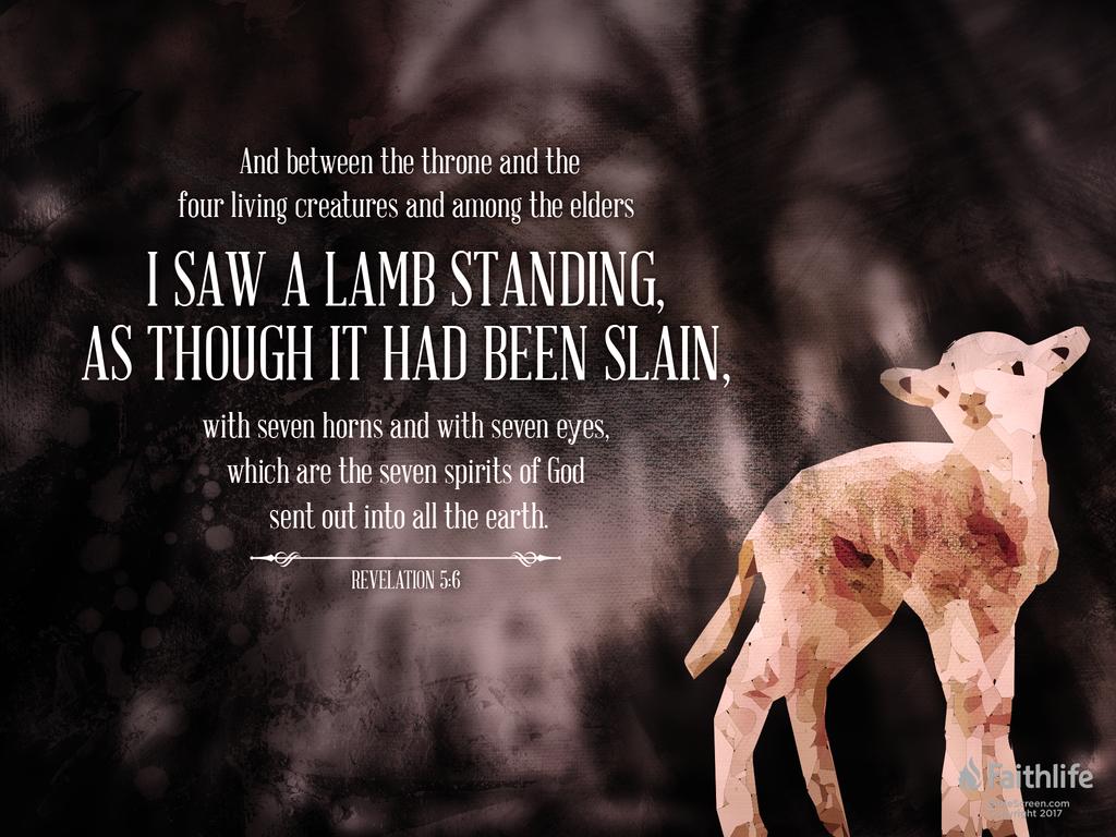 Rev 5:6 Then I saw a Lamb, looking as if it had been slain, standing in the center of the throne, encircled by the four living creatures and the elders. He had seven horns and seven eyes, which are the seven spirits of God sent out into all the earth. NIV